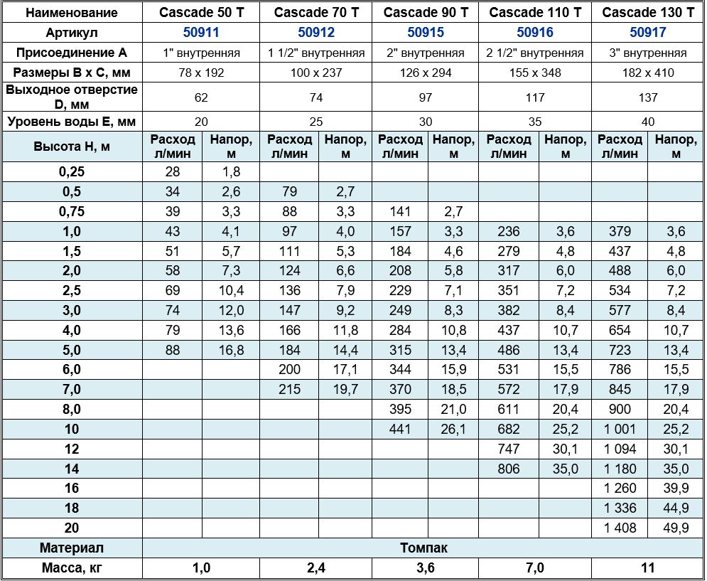 Фонтанная насадка Cascade 50 T