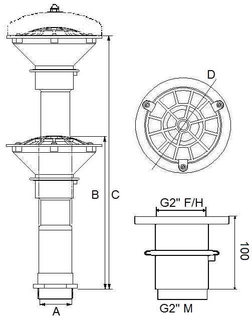 Регулируемые переливы поддерживают максимальный уровень воды внутри водоема или фонтана, устанавливая уровень воды до необходимой отметки. Эта отметка колеблется между 30 и 50 см или 50 и 90 см. Донный слив с присоединением 2 дюйма устанавливается, чтобы демонтировать перелив, если нужно слить воду.
